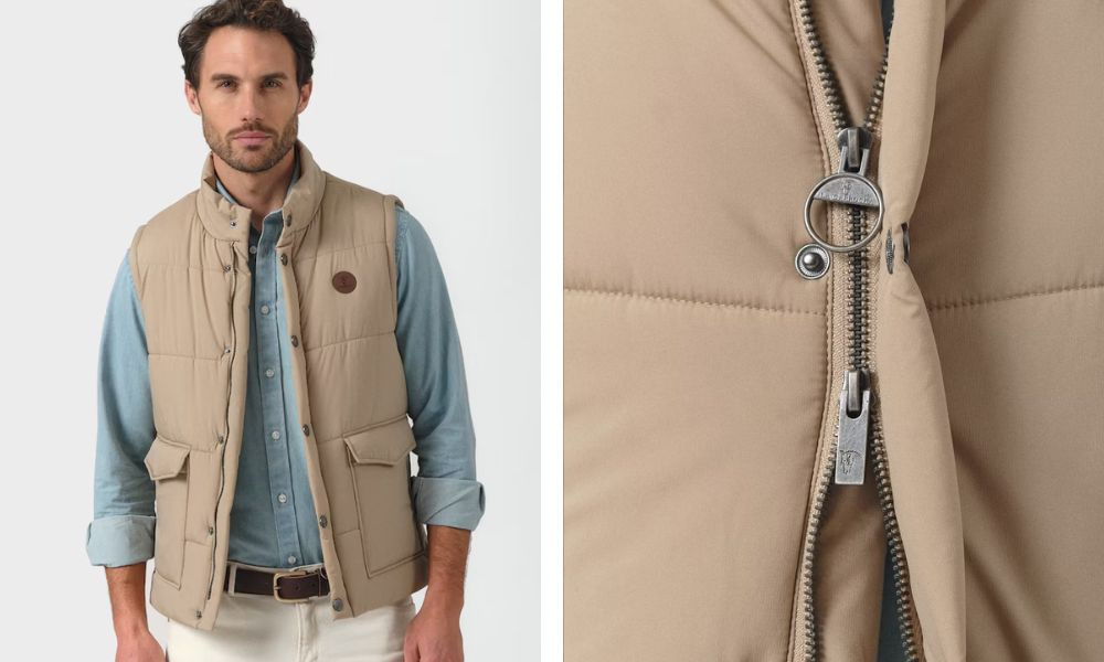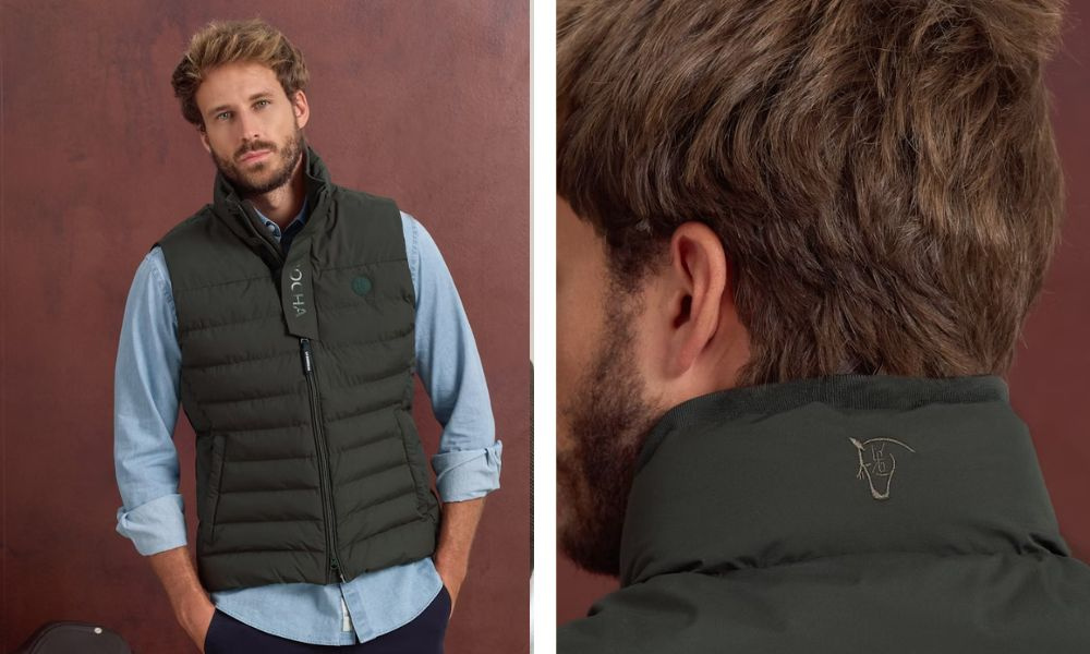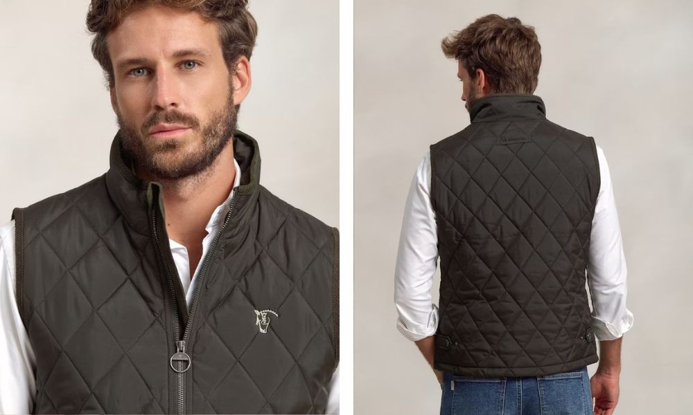Para los días activos, combina una camiseta básica o un polo con un chaleco acolchado ligero y unos chinos o jeans. Es un look cómodo, moderno y con ese toque funcional que no pasa desapercibido.
